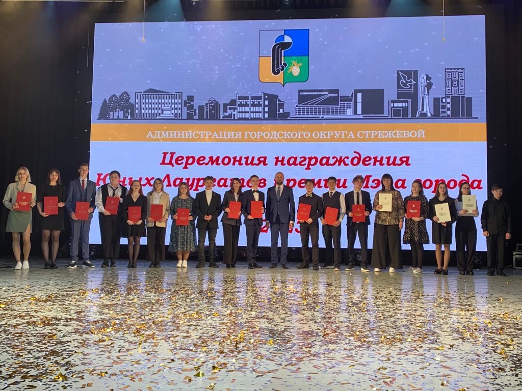 1) Лауреатов премии Томской области в сфере образования, науки, здравоохранения и культуры. Ими стали Непеина Елена, ученица 11 класса школы №4, обучающиеся 11 класса школы №5 Гришина Евгения и Хурматуллин Тимур. Награждение провёл В.М. Харахорин, депутат Законодательной Думы Томской области.